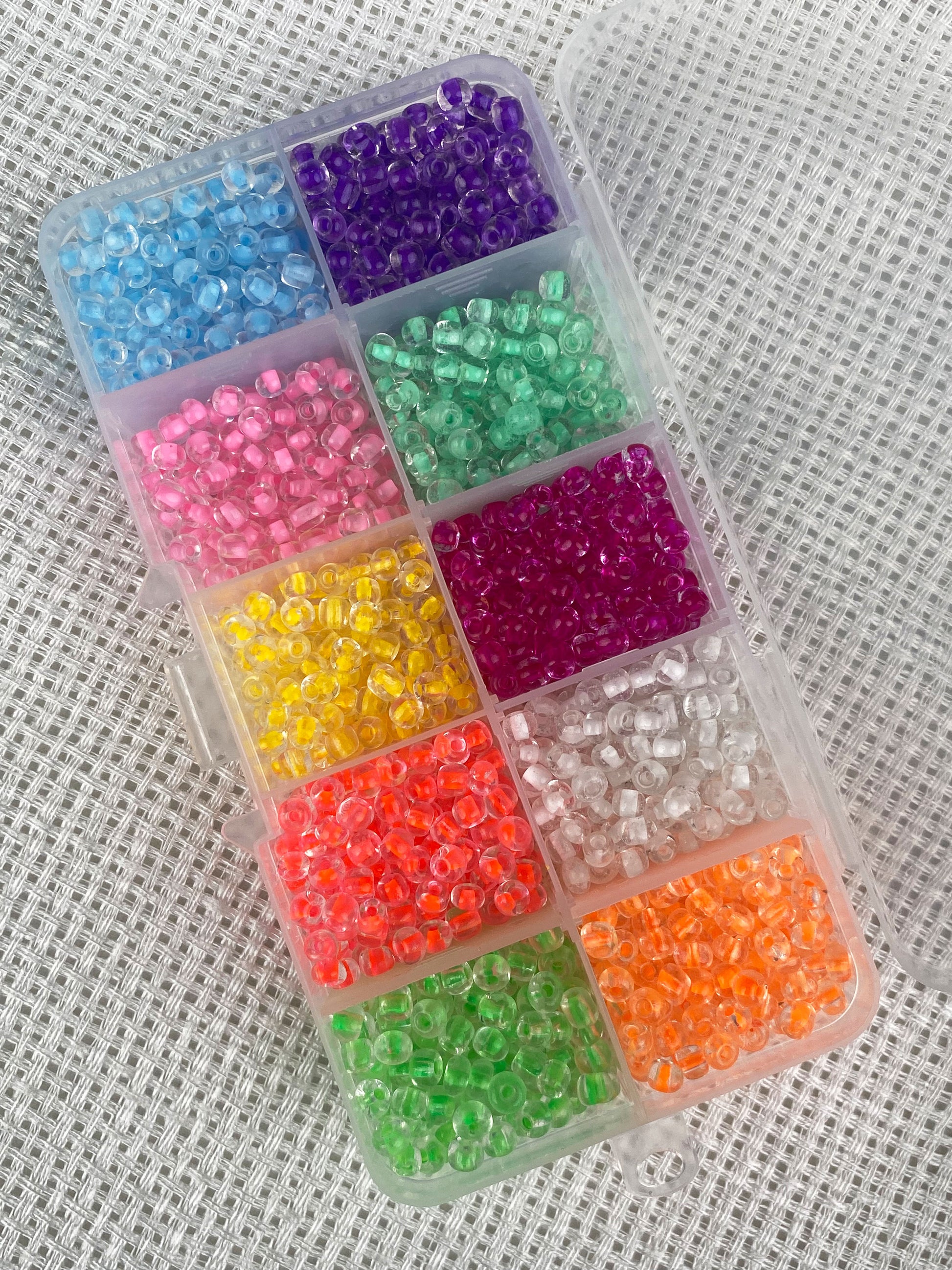 Diese farbenfrohen Glasperlen sind ideal für Armbänder, Ketten, Ringe oder andere Bastelarbeiten. Jede Farbe ist einzeln sortiert – perfekt für deine Sommerträume aus Perlen!