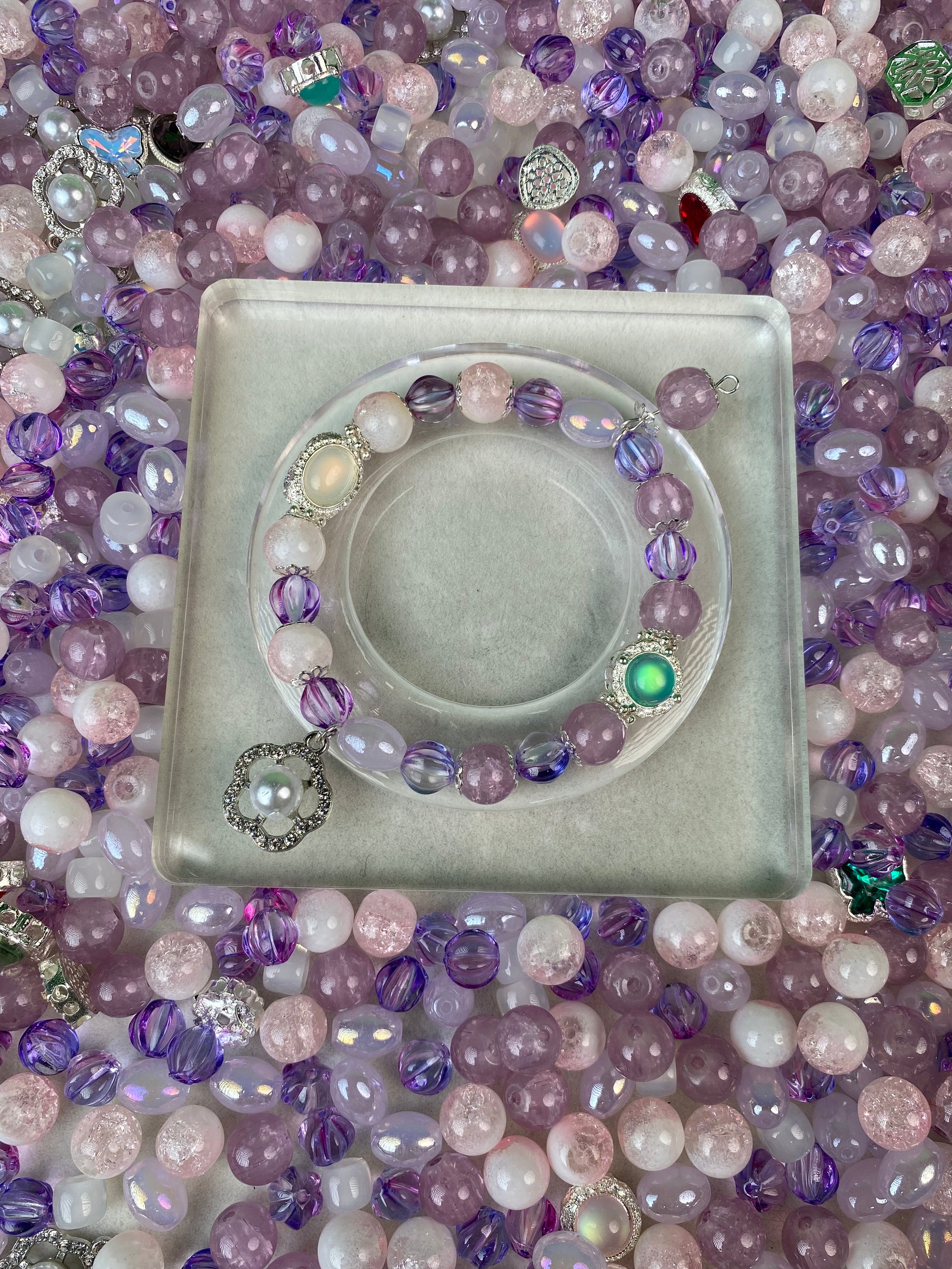 Zarte Flieder- und Rosatöne, funkelndes Glas und ein verspielter Anhänger – die Kollektion „Lavendelhauch“ ist dein Begleiter für alle Momente, in denen du dich feminin und leicht fühlen möchtest.