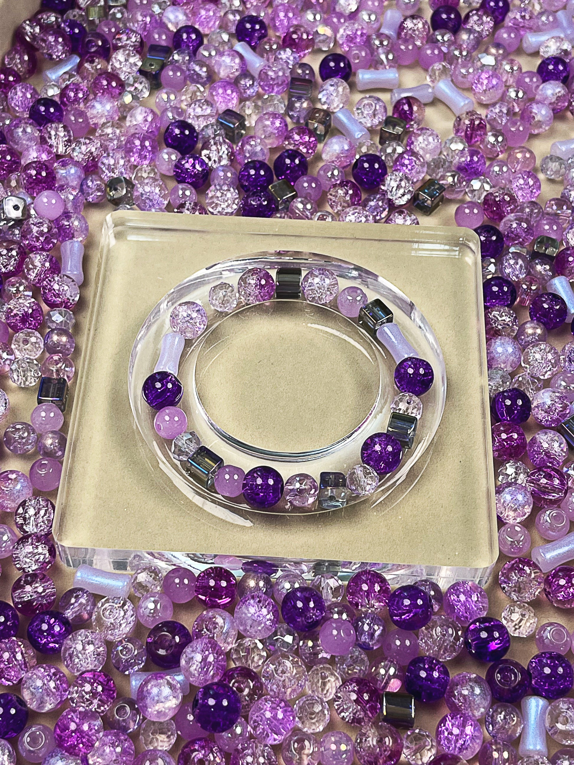 Die Morgenflieder-Kollektion fängt die Zartheit der ersten Sonnenstrahlen ein, wenn der Himmel in leichten Fliedertönen schimmert und die Welt noch in Stille liegt. Eine Komposition aus hellem Lavendel, funkelndem Amethyst, weichem Rosé und tiefem Violett, durchzogen von gläserner Transparenz und metallischem Glanz.
