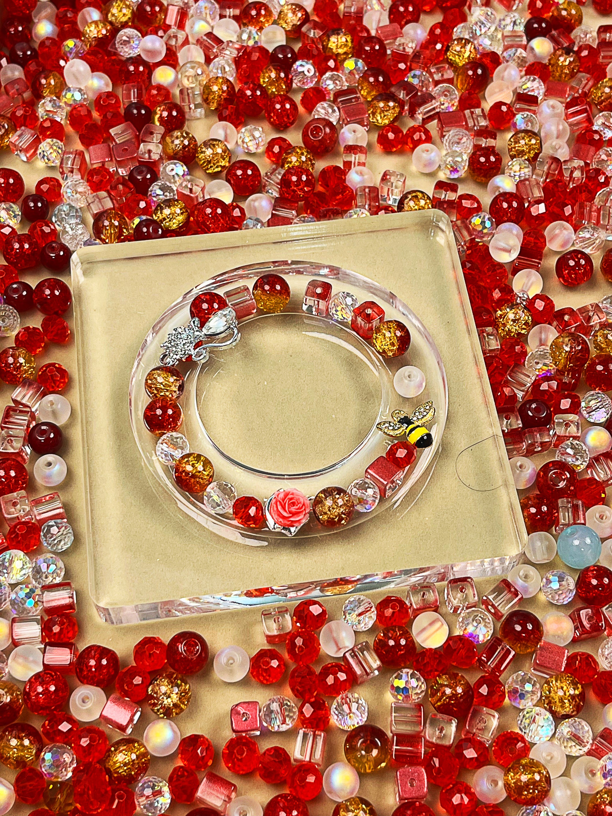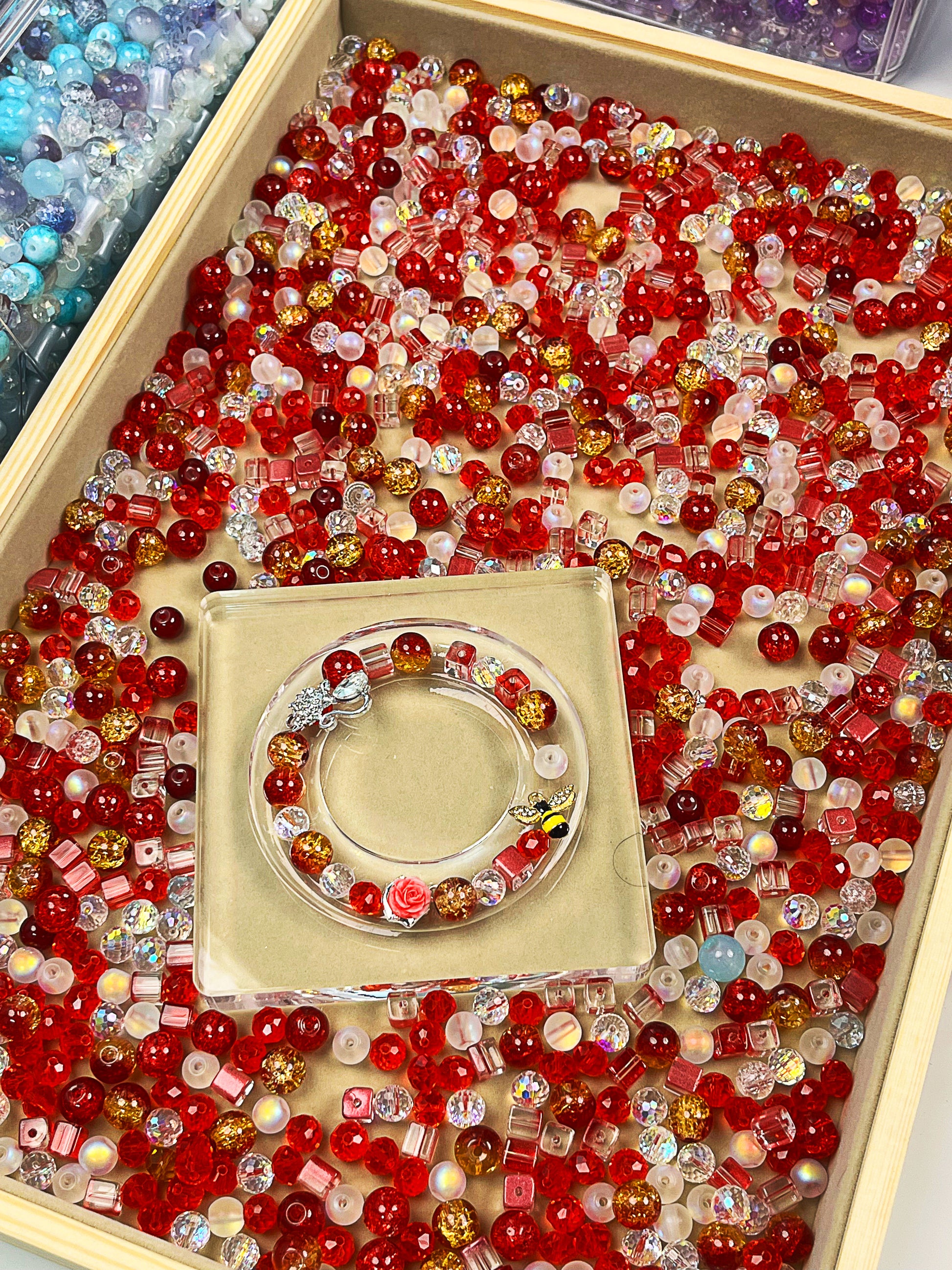 Zwischen facettierten Kristallen, glatten Glasperlen und kleinen Details wie Rosen und Bienchenanhängern entfaltet sich eine Geschichte von Wärme, Freude und natürlicher Schönheit.