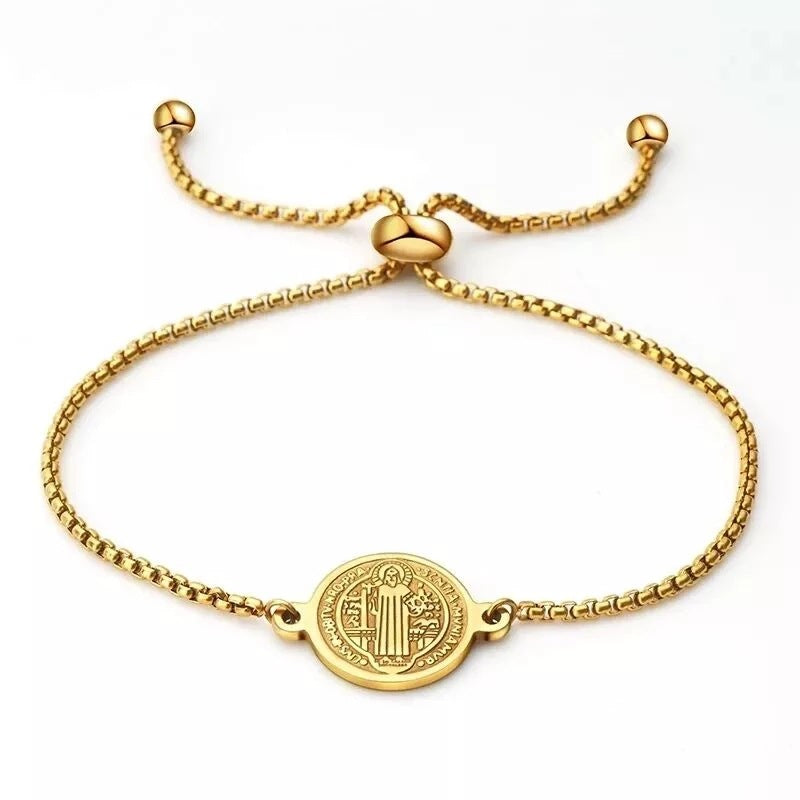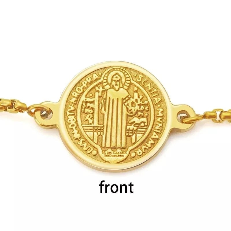 This handcrafted bracelet features the St. Benedict medal — a powerful Christian symbol of protection and peace, used for centuries as a spiritual shield against negativity, fear, and harm.